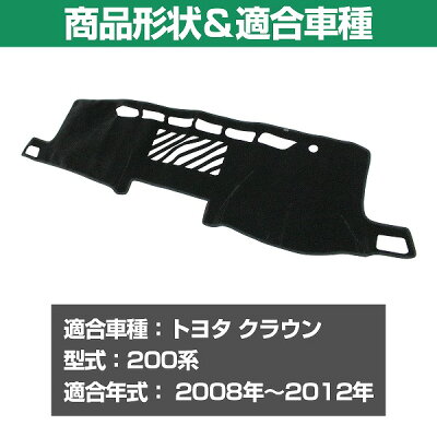専用設計 ダッシュマット トヨタ クラウン 200系 2008-2012 アスリート ロイヤル ズレ防止 滑り止め付き ブラック ダッシュボードマット
