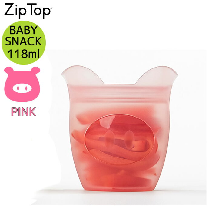 ZipTop ジップトップ ベビースナック ピッグ ブタ 豚 ピンク シリコン シリコーン お菓子 食品 保存容器 小物入れ キッチン アウトドア 冷凍 冷蔵 電子レンジ 食洗機 対応 収納ケース 小物入れ メイクポーチ フルーツ 野菜 果物 食材 Z-BSCP-05 【あす楽/土日祝対象外】
