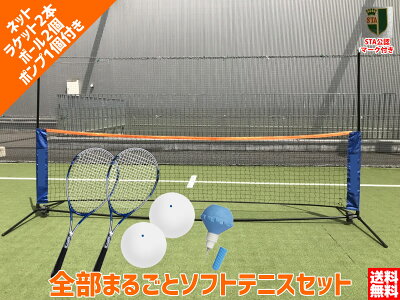 ソフトテニス ラケット カワサキ 2本組 ボール2個 ポンプ1個 家庭用簡易ネット KS-4000 STA公認マーク付き オールラウンドラケット 公式戦使用可 ラケットケース ネット収納ケース付き 組み立て簡単 KAWASAKI