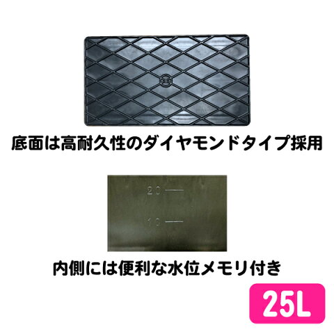 ●サイズ 上部 縦:約640mm 横:約370mm 下部 縦:約577mm 横:約315mm 深さ:約145mm ●材質:ポリプロピレン ●色:黒 ●容量:25リットル ●生産国:日本 ※一部地域によっては別途中継料金がかかる場合もございます。