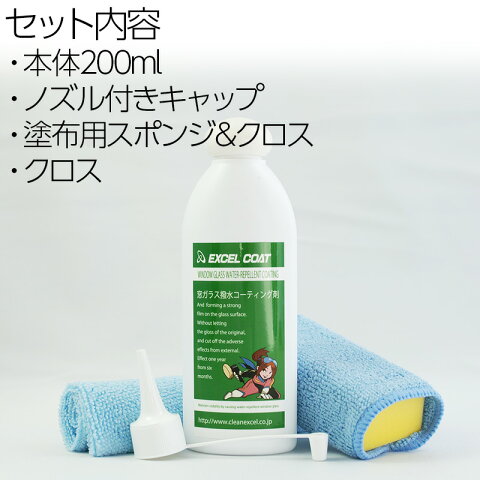 【名称】 窓ガラス撥水コーティング剤 【用途】 ガラスの撥水コーティング・ガラス内側の曇り止め 【成分】 変性シリコン・2−プロパノール・有機酸・ポリブテン・その他 【内容量】 200ml 【名称】 ガラスクリーナー 【用途】 ガラス表面の油膜などの除去。