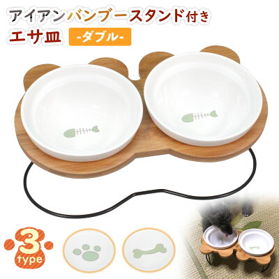 えさ皿 猫 犬 食器 えさ 皿 餌入れ フードボウル ペット 猫用 犬用 ご飯皿 お皿 水飲み 食器台 食べやすい 傾斜 陶器 アイアンバンブースタンドダブル