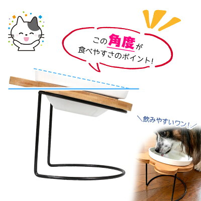 木製スタンド付きの高さがあるフードボウルなのでネコちゃん、ワンちゃんがエサを食べやすいようになっています。