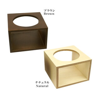四角いボックス型の台の上部の板に、フードボウルを乗せるための丸い穴が1つ開いています。